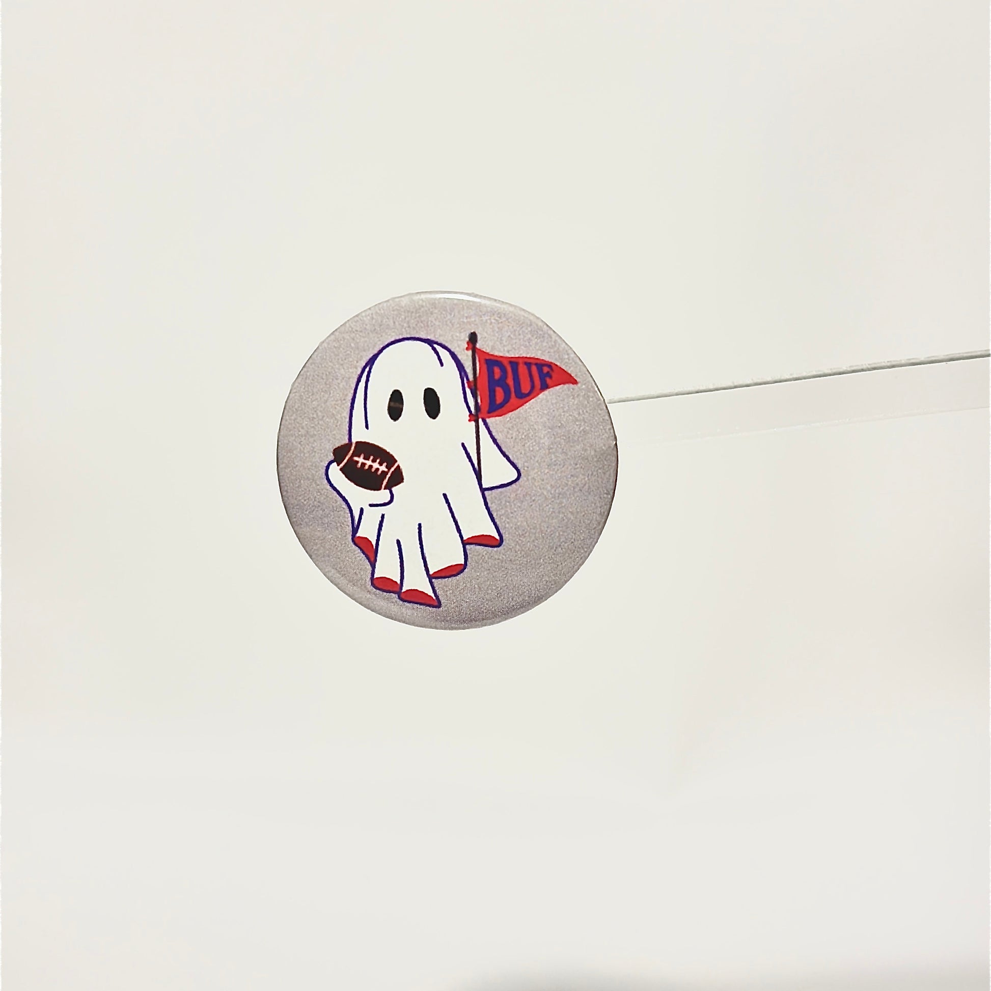 Buttons are 1.25" in diameter. They have a plastic backing with metal clasp.